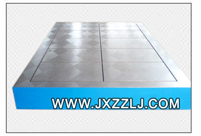 鑄鐵平板(鑄鐵平臺)的包裝:鐵板包裝和木制包裝兩種形式,平臺表表用塑料膜封裝,這種包裝適于平板內(nèi)陸運(yùn)輸,并有良好的防潮、防震、防銹和防野蠻裝卸等保護(hù)平板的措施,以確保安全運(yùn)抵現(xiàn)場。 鑄鐵平板(鑄鐵平臺)鑄鐵的運(yùn)輸:運(yùn)輸是保證平板不變形的一個重要環(huán)節(jié),所以運(yùn)輸平板時要保證不超載,不超速,不疲勞駕駛, 不在天氣惡劣的情況下運(yùn)輸。 鑄鐵平板(鑄鐵平臺)安裝: 鑄鐵平板(鑄鐵平臺)調(diào)試: 鑄鐵平板(鑄鐵平臺)工作環(huán)境: 鑄鐵平板(鑄鐵平臺)的使用注意事項(xiàng):平板在使用時要先進(jìn)行安裝調(diào)試。然后,把平板的工作面擦拭干凈,在確認(rèn)沒有問題的情況下使用,使用過程中,要注意避免工件和平板的工作面有過激的碰撞,防止損壞平板的工作面;工件的重量更不可以超過平板的額定載荷,否則會造成工作質(zhì)量降低,還有可能損壞平板的結(jié)構(gòu),甚至?xí)斐善桨遄冃危怪畵p壞,無法使用。 平板在使用時要先進(jìn)行安裝調(diào)試。然后,把平板的工作面擦拭干凈,在確認(rèn)沒有問題的情況下使用,使用過程中,要注意避免工件和平板的工作面有過激的碰撞,防止損壞平板的工作面;工件的重量更不可以超過平板的額定載荷,否則會造成工作質(zhì)量降低,還有可能損壞平板的結(jié)構(gòu),甚至?xí)斐善桨遄冃危怪畵p壞,無法使用。 鑄鐵平板(鑄鐵平臺)的制造標(biāo)準(zhǔn):按JB/T7974-1999制造)簡要描述 下載PDF文檔 鑄鐵平板(鑄鐵平臺)的質(zhì)量檢測: 1、鑄鐵平板(鑄鐵平臺)工作表面不應(yīng)有銹跡、劃痕、碰傷及其他影響使用的外觀缺陷。2、鑄鐵平板(鑄鐵平臺)工作表面不應(yīng)有砂孔、氣孔、裂紋、夾渣及縮松等鑄造缺陷。各種鑄造表面應(yīng)清除型砂、且表面平整,涂漆牢固。各棱邊應(yīng)修鈍。在精度等級低于“00”級的平板工作面上,對于直徑小于15mm的砂孔允許用相同的材料堵塞,其硬度應(yīng)低于周圍材料的硬度。在工作面上堵塞的部位應(yīng)不多于四處,其相互之間的距離應(yīng)不小于80mm。 3、在鑄鐵平板(鑄鐵平臺)的相對兩個側(cè)面上,應(yīng)設(shè)置有安裝手柄、吊環(huán)等吊裝設(shè)施的螺紋孔或圓柱孔。設(shè)計(jì)吊裝位置時應(yīng)考慮盡量減少因吊裝而引起的變動。 4、根據(jù)用戶要求,在板工作面上設(shè)置螺紋孔或溝槽后,這些部位不應(yīng)出現(xiàn)高于工作面的凸起現(xiàn)象。 5、鑄鐵平板(鑄鐵平臺)應(yīng)采用優(yōu)質(zhì)細(xì)顆料的灰口鑄鐵或合金鑄鐵制造。 6、鑄鐵平板(鑄鐵平臺)工作面的硬度應(yīng)為HB 170-220。 7、鑄鐵平板(鑄鐵平臺)工作面應(yīng)采用刮削工藝,對于“3”級平板工作面也可以采用刨削工藝,刨削工作表面的表面粗糙度按輪廓算術(shù)平均偏差Ra值應(yīng)不大于5um 8、鑄鐵平板(鑄鐵平臺)應(yīng)經(jīng)過穩(wěn)定性處理和去磁。 鑄鐵平板(鑄鐵平臺)平 面 度:可分實(shí)驗(yàn)室級(Reference)、校驗(yàn)級(Master)、工 具室級(Working) 三級 鑄鐵平板(鑄鐵平臺)平面研磨:平臺在很早的時候,人們利用三塊平臺相互匹配以產(chǎn)生真平平面。一個熟練而 又有耐心的 磨石師傅可以不藉助任何量測儀器,而僅利用三平臺相互匹配的 方式,做多次90度之旋轉(zhuǎn), 即可產(chǎn)生令人難以相信的真平程度。 鑄鐵平板(鑄鐵平臺)平面度: 1.AA級:其平面度(μm)= 1+1.6D2 (D為平臺對角線長或直徑),用於高度精密 之測定之用, 常用於實(shí)驗(yàn)室。 2. A級:其平面度為AA級之兩倍誤差,常用於工具檢驗(yàn)室作精密量具之檢驗(yàn)之用。 3. B級:其平面度為AA級之四倍誤差,常用於工具檢驗(yàn)室或在現(xiàn)場檢驗(yàn)量具或劃線之用。 鑄鐵平板(平臺)的分類: 按照用途分: 鑄鐵平板(平臺)可以分為:基礎(chǔ)平板、劃線平板、檢驗(yàn)平板、鉚焊平板、焊接平板、火工平板、鉗工平板、研磨平板、刮痧平板、壓沙平板、試驗(yàn)平板、機(jī)床工作臺(如:落地鏜床工作臺)、三座標(biāo)平板、模具墊板、拼裝平板(也叫裝配平板)。 或:基礎(chǔ)平臺、劃線平臺、檢驗(yàn)平臺、鉚焊平臺、焊接平臺、火工平臺、鉗工平臺、研磨平臺、刮痧平臺、壓沙平臺、試驗(yàn)工作臺(如:振動試驗(yàn)工作臺簡稱振動試驗(yàn)臺)、機(jī)床工作臺(如:落地鏜床工作臺)、三座標(biāo)平臺、模具工作臺、拼裝平臺(也叫裝配平臺)。 按照形狀分類:普通平板(普通平臺)、圓形平板(也叫圓平板/圓平臺/圓形平臺)、方平板(方平臺) 按照表面工藝可以分為:平面平板和T型槽平板(T型槽平臺)