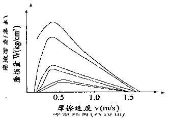 曲線所表示的在初期磨損量大,這是由于磨損面不平滑,實際接觸面積小,比壓大所造成的。對于平板來說,使用中平板刮研接觸斑點始終處于初期磨損階段,這是造成刮研接觸斑點磨損主要原因之一。根據磨擦速度、接觸壓力磨損曲線(下圖)可以看出,磨損速度v=0.3~0.5m/s的狀態(tài)下,磨損量最大,這一段稱為粘著磨損。平板的使用狀態(tài)下,工件在平板上移動速度也正是在這一階段上進行工作的,這是造成刮研接觸斑點磨損的原因之二。